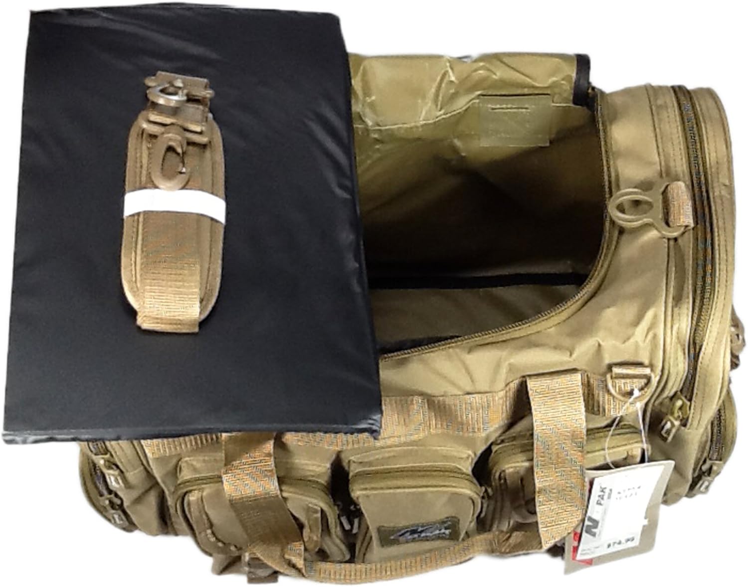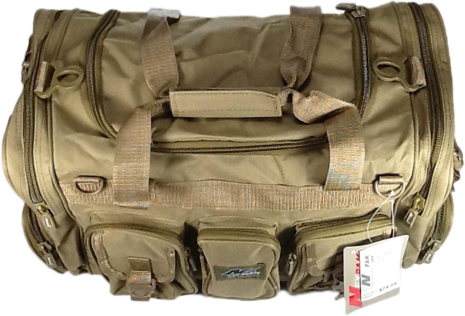 PRODUCT DETAILS Capacity: 2600 cu. in. Dimensions & weight: 22”(Width) x 12”(Height) x 10”(Depth) 2 lbs 12 oz empty (Approximated weight) Compartments & Pockets: 1 main compartment with top access 3 Front pockets - 3 small front pockets in parallel - 2 pockets with compression straps 2 Side pockets on each side - 1 zippered pocket - 1 additional small pocket - 2 compression straps Materials: Polyester with PVC water resistant lining Accessories & additional features: Removable Shoulder straps MOLLE style strap on the side pocket Detachable Velcro grip handle Other colors are available and please check its availability