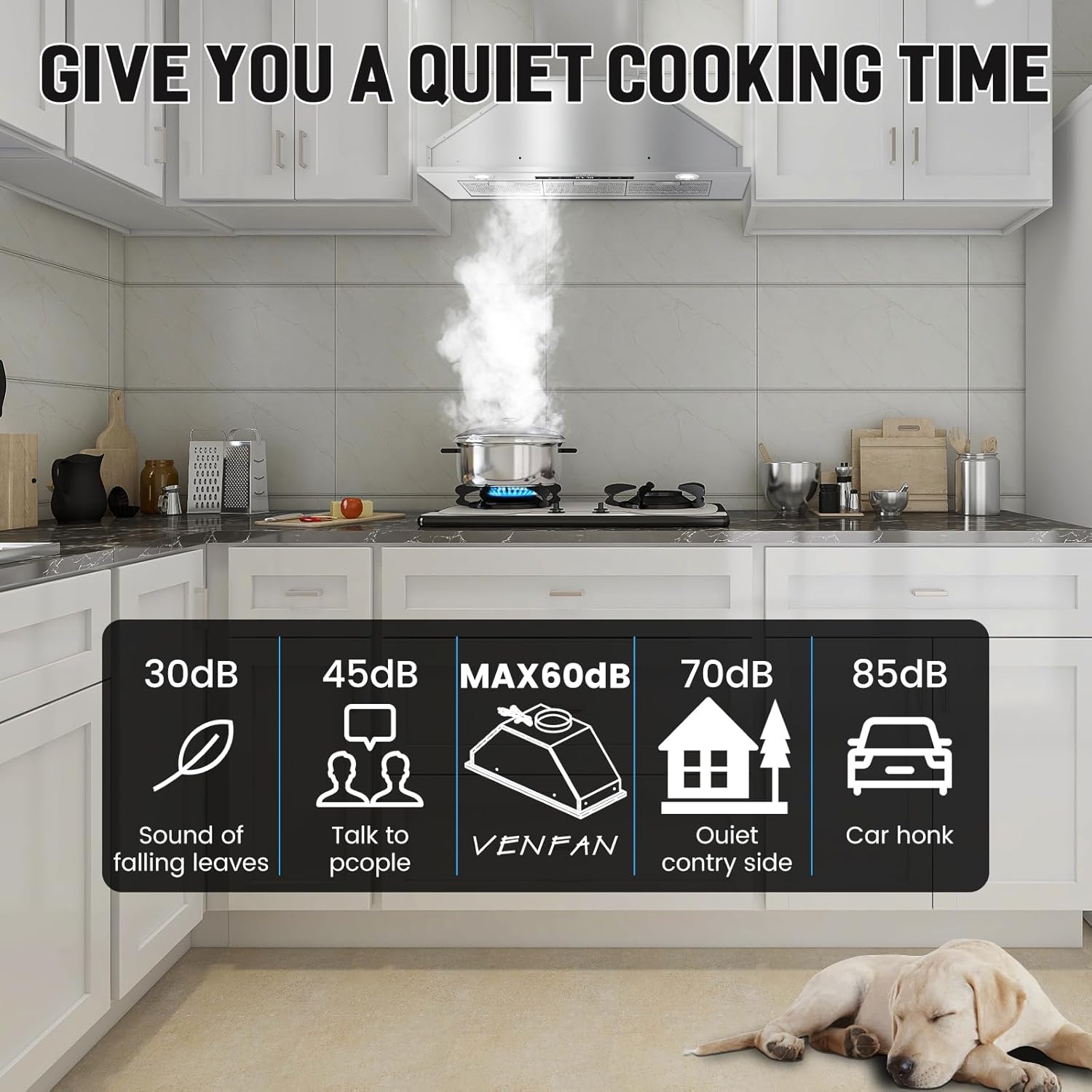 • Ultra-Quiet Operation: This 36 inch range hood insert delivers powerful suction for effective odor removal while maintaining a whisper-quiet 35-65dB across 4 speeds. Stove vent hood making it the ideal quiet range hood for a peaceful kitchen