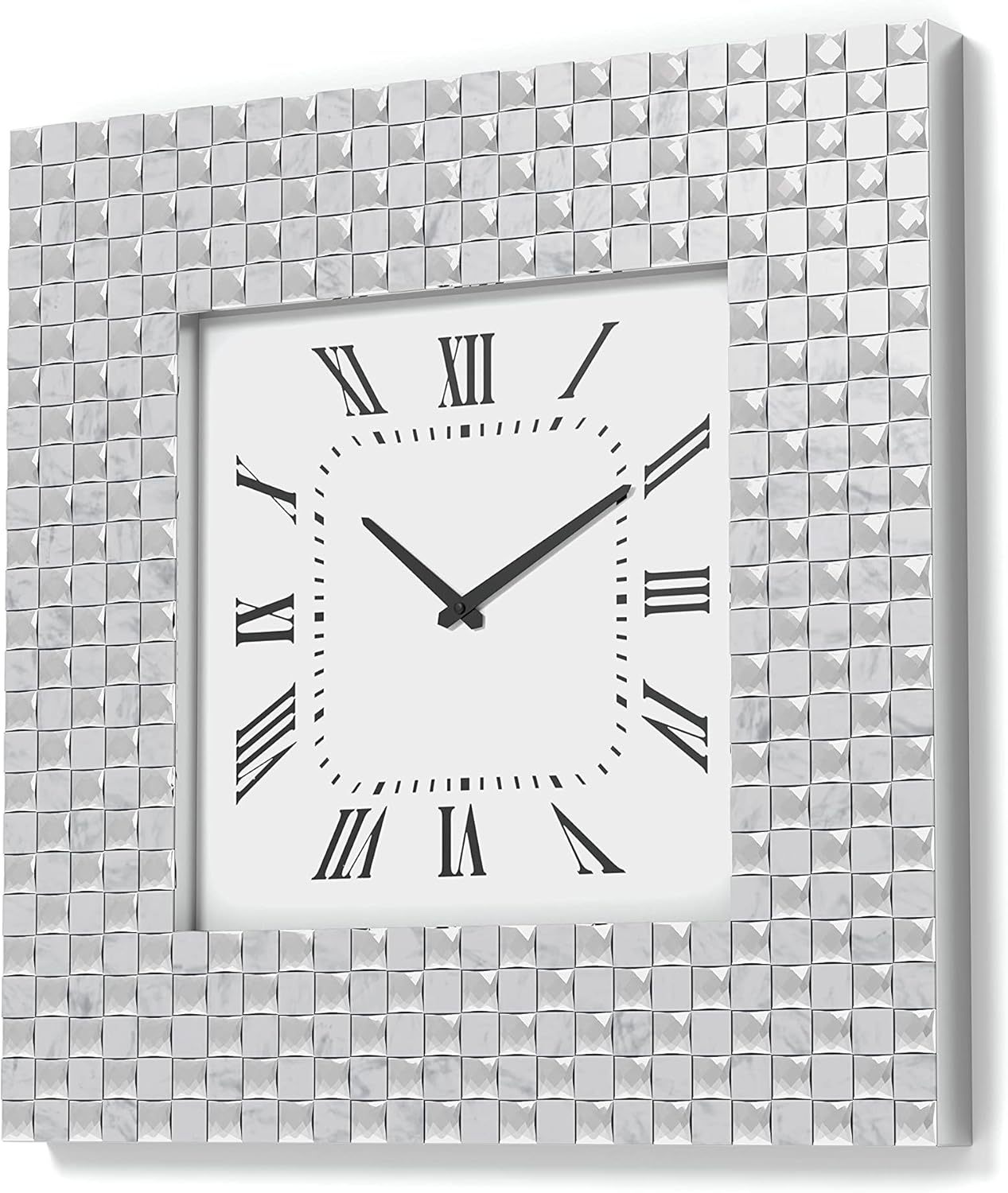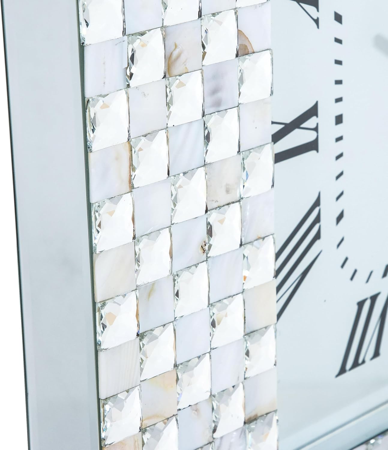 Embellish a wall in your home office with an exquisite wall clock. This square clock showcases uniform square crystal accents. Traditional clock face features, such as inscribed Roman numerals, mingle with modern minimalism as a second hand doesn't complicate the hour and minute hands.