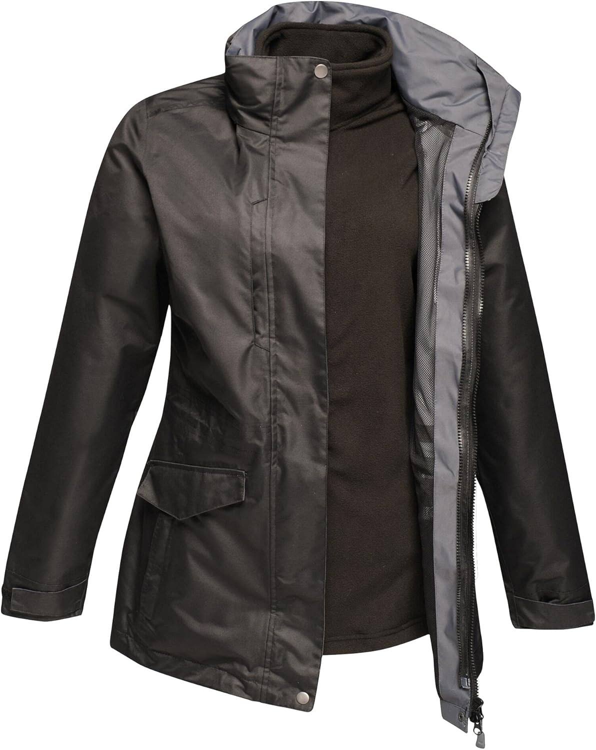 The Regatta Professional Ladies Benson III 3 in 1 Jacket is a cosy work jacket great for travelling from job to job. The Isotex fabric is waterproof, windproof and breathable to help keep you dry and comfortable whatever the weather. The waterproof protection keeps water out while the breathable nature of the fabric allows moisture vapour to escape. The fabric is completely windproof which eliminates windchill and keeps cold air out. Taped seams ensure total waterproof protection by preventing water from seeping through the seams and stitching. The Symmetry fleece is soft, quick drying and easy to care for, providing comfortable and warm insulation. The anti-pill finish means that it won't bobble easily during everyday wear, ensuring the fabric keeps its style for longer. The part mesh construction provides enhanced breathability, allowing moisture vapour to evaporate easily, ideal for keeping cool in warmer temperatures or when working hard. Multiple pockets provide convenient storage for essential items, allowing you to stay organised while also having your most important things to hand.