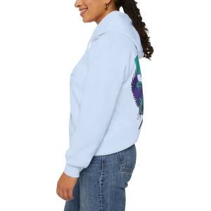 This unisex heavy blend hooded sweatshirt is relaxation itself. Made with a thick blend of cotton and polyester, it feels plush, soft and warm, a perfect choice for any cold day. In the front, the spacious kangaroo pocket adds daily practicality while the hood’s drawstring is the same color as the base sweater for extra style points.