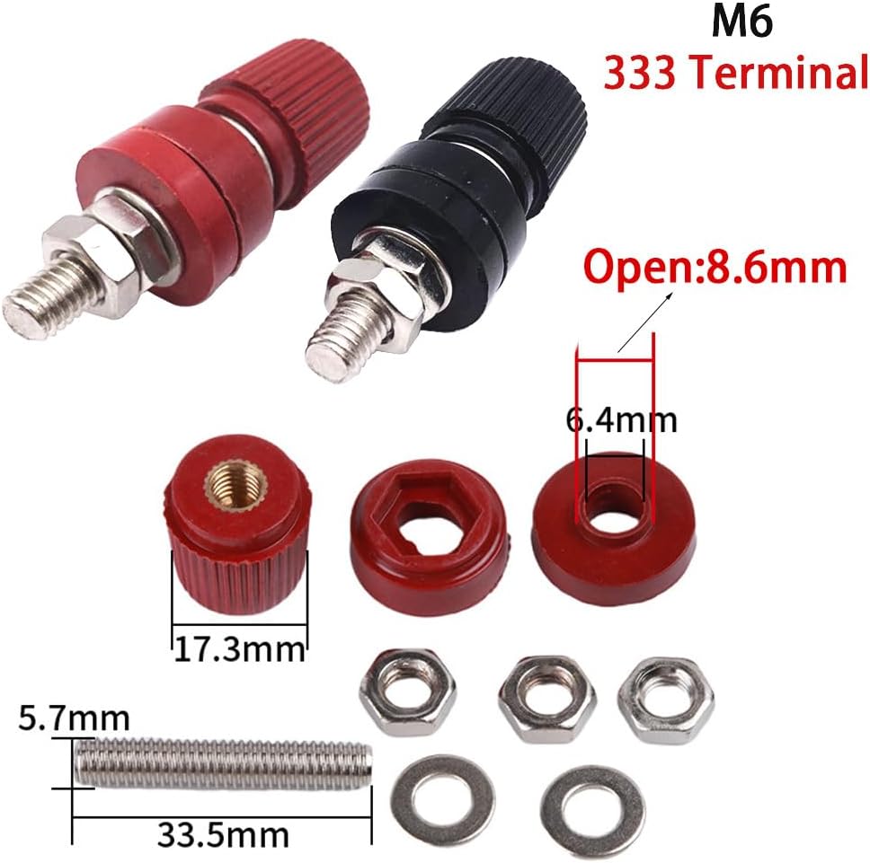 Color:Red,Black,Gold-platedMaterial:Pure Copper,Iron,PlasticsType 1: Pure Copper 333 Type Binding Post TerminalType 2: Iron 333 Terminal 6mm Screw M6 Power Supply Package List:20pairs or 40pcsNote:1. Please confirm whether it is the product you need before payment.2. Please allow ±0-2mm difference due to manual measurement.(1 inch=2.54cm)3. The flaws of the product in the picture may be caused by lighting, the picture may not reflect the actual color of the product, subject to the actual product. Please make sure you do not mind before you bid. Thank you!For Auto Boat Marine Solar System Positive and Negative.